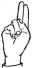 На ћирилици написано ИРИНА АМАНОВИЋ састоји се из 13 слова [?]. Исписано ћириличном једноручном азбуком за глувонеме: